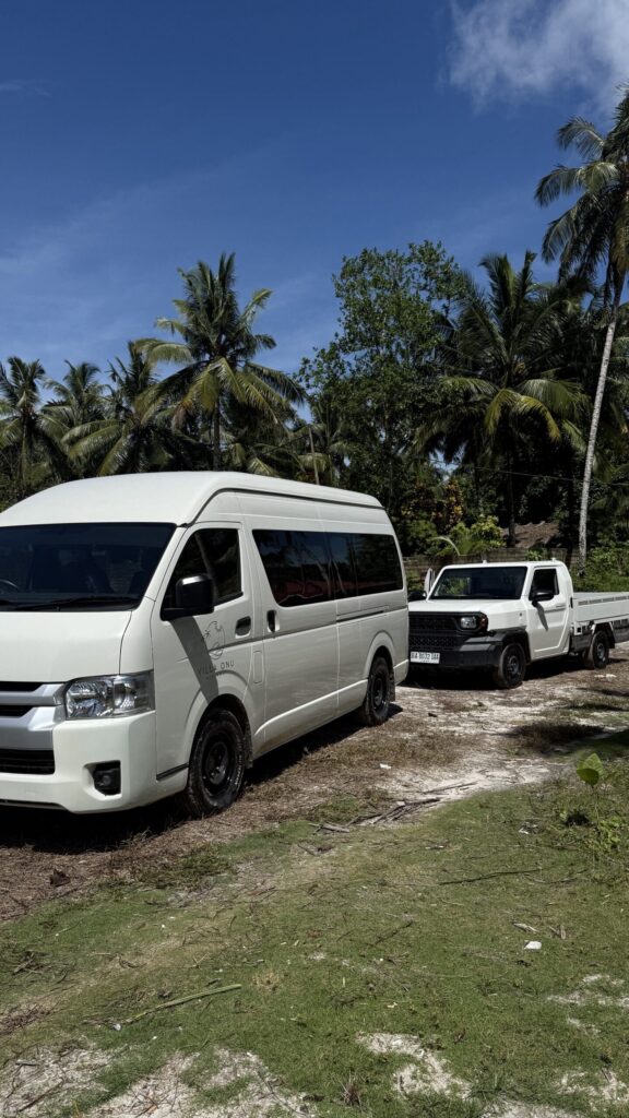 Car transfer from Tuapejat Harbor or Mentawai Airport to Villa Onu is available using our brand new air-conditioned minibus, complete with an English-speaking driver. A separate pickup vehicle can