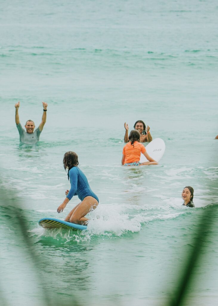 Villa Onus talented surf coaches can provide you and your friends or family with lessons and coaching for beginner and intermediate-level surfers.