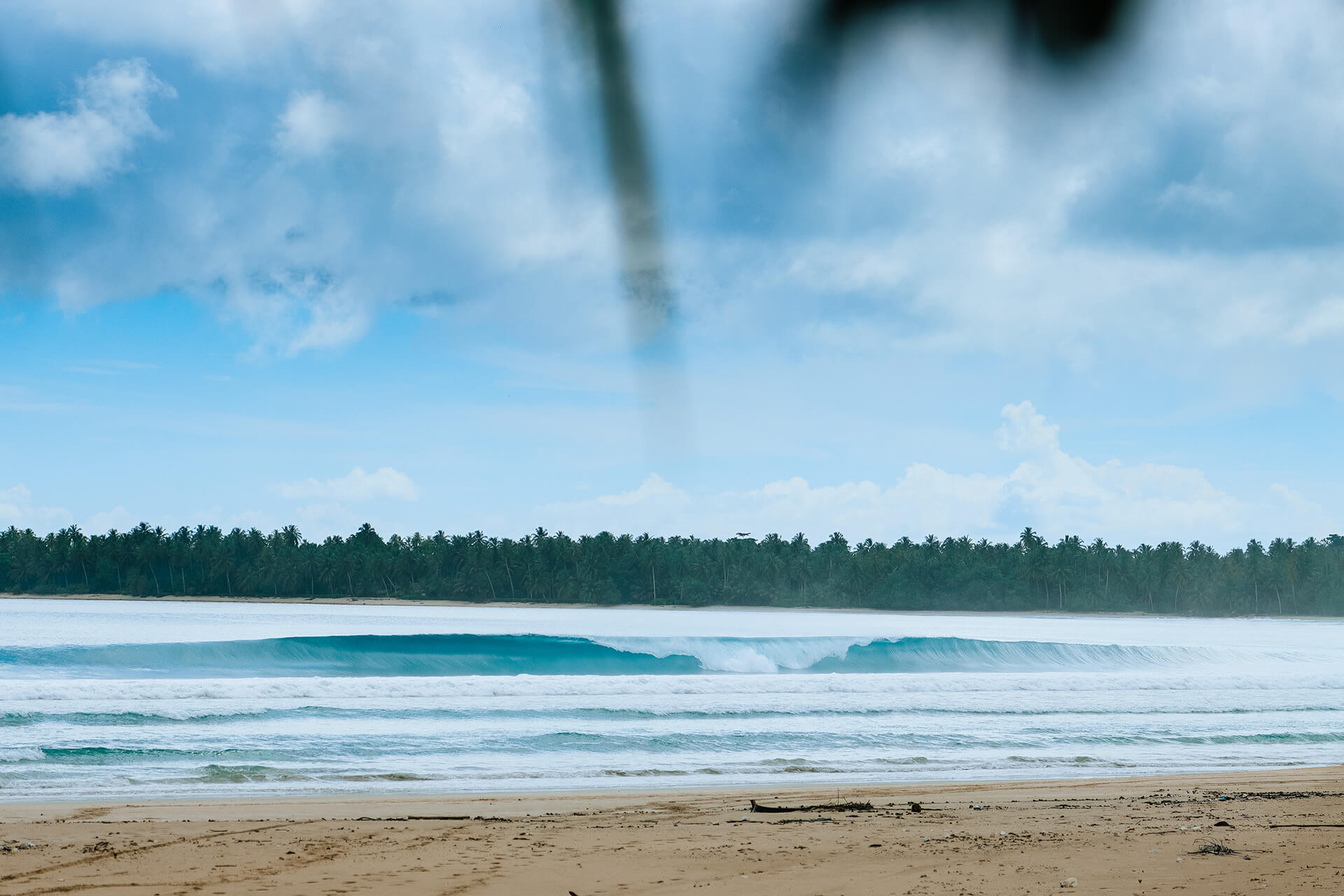 A beautiful white sand beach that has perfect sand-bottom peaks all up and down the beach, depending on the sand banks.